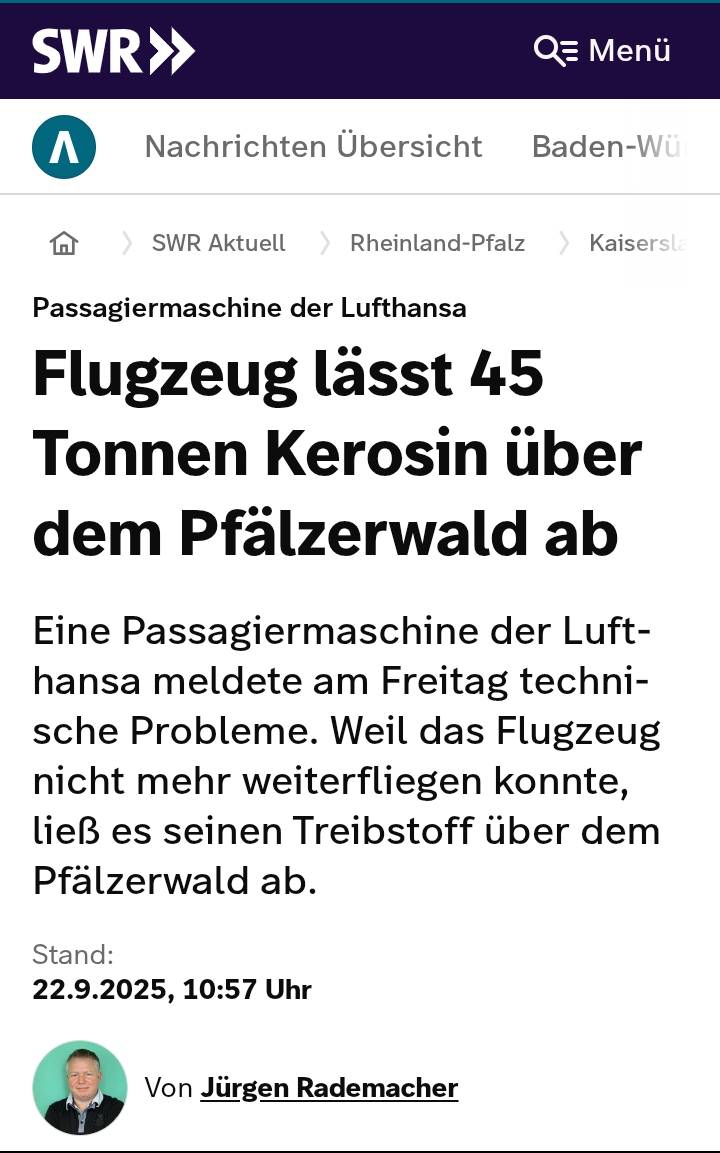 SWR: Schon wieder 50 Tonnen Kerosinabwurf
